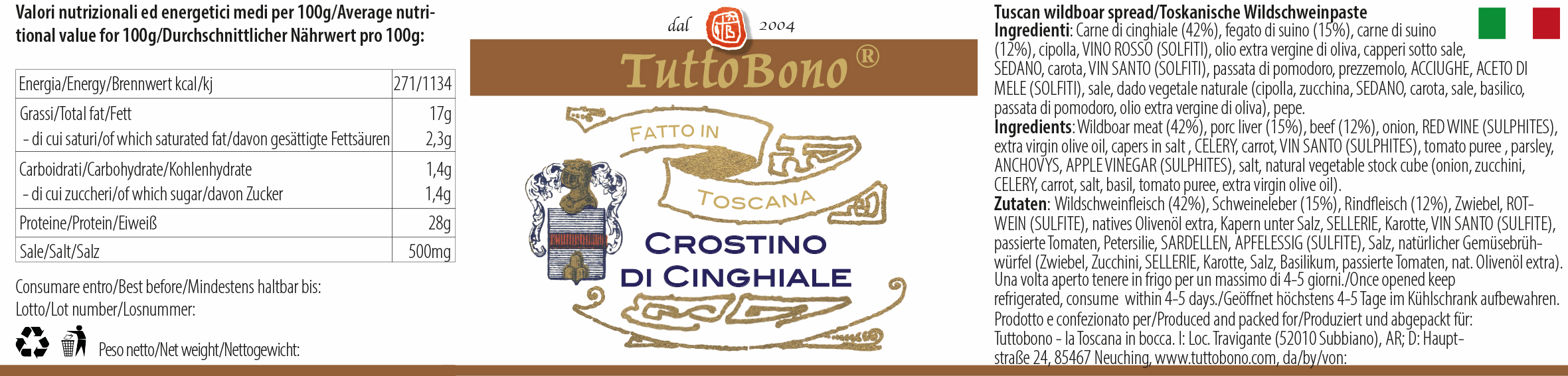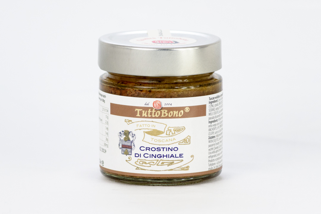 Sehr leckere Alternative zum klassischen "Crostino toscano". Auch extrem fleischig, sehr schmackhaft und nur aus toskanischem Wildschwein. Ideal als Brotzeit oder als Vorspeise, wenn man sich die Toskana nach Hause holen will.