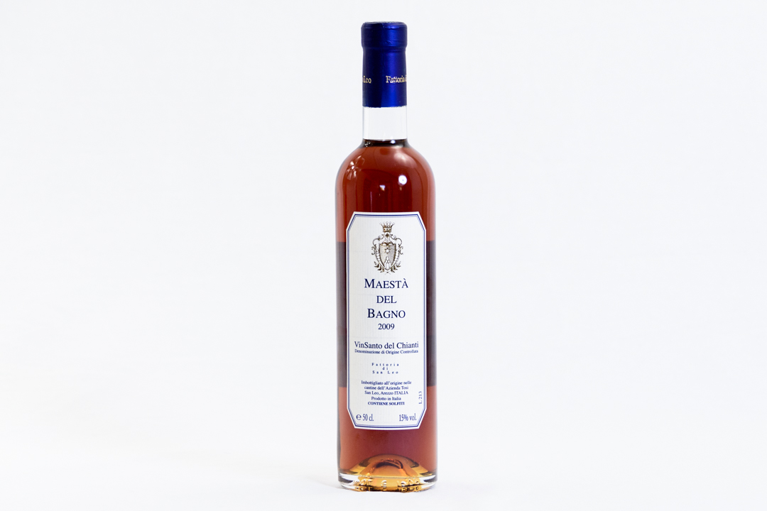 Der Maestà del Bagno ähnelt sehr einem trockenen Sherry Fino, wird aus Biotrauben gewonnen und in einer kleinen Kellerei in Arezzo hergestellt. Angenehme Süße, duftet nach Honig und Rosinen und kann sowohl als Aperitif als auch, wie in der Toskana typisch, mit oder ohne Cantucci als Nachtisch serviert werden. Geht auch als Betthupferl!