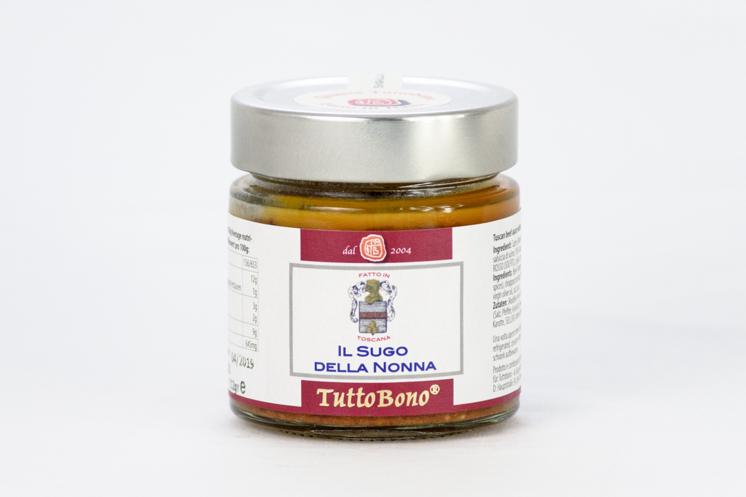 Ginetta: "Diese leckere Soße, die fast jeden Sonntag meines Lebens bereichert hat, hieß immer "sugo della mamma". Unsere Tochter taufte sie in "sugo della nonna" um, und für sie war es das, was sie sich am Sonntag immer wieder zum Essen gewünscht hat. Meine Mama, bzw. Nonna Annalisa, weiß einige Rezepte ihrer Mutter wie ein Profikoch zuzubereiten. Dieser Sugo gehört dazu." Mit den besten Zutaten und Können vorbereitet, schmeckt diese Soße jedem, aber vor allem dem, der auf Nudeln mehr Fleisch als Tomaten mag. Diese Soße als Bolognese zu bezeichnen, wäre falsch, da hier viel gutes Chianina-Rindfleisch und leckere toskanische Salsiccia, wenig Tomaten und kein Tomatenmark enthalten sind.